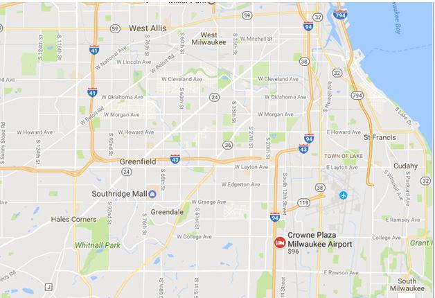 The Crowne Plaza Milwaukee Airport is conveniently located off I-94, just 2.5 miles from General Mitchell International Airport. Driving from I-94 heading toward Chicago, use Exit #316-319 College Avenue/Airport ramp. Exit on College Ave and turn left (east). Turn right at 13th Street and the hotel will be on your right.